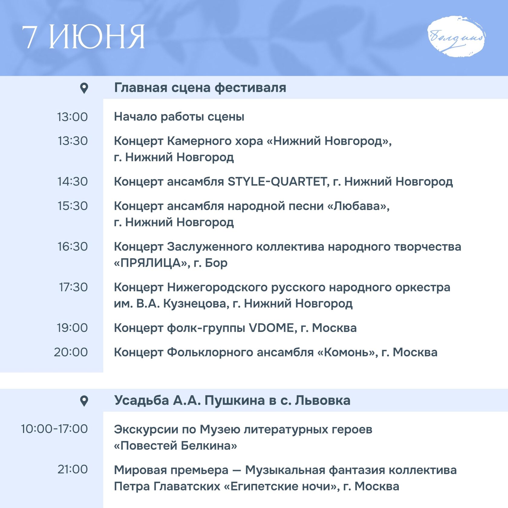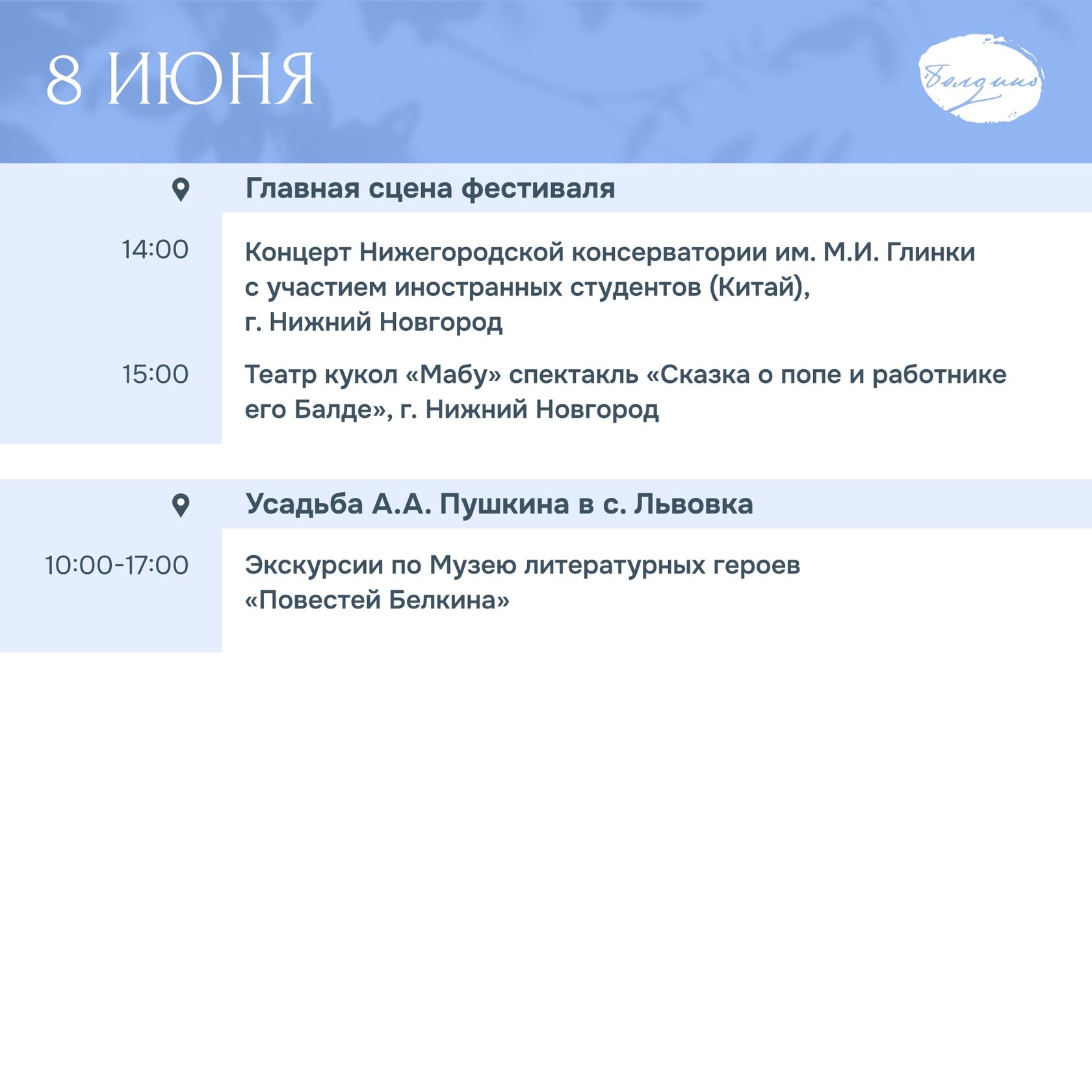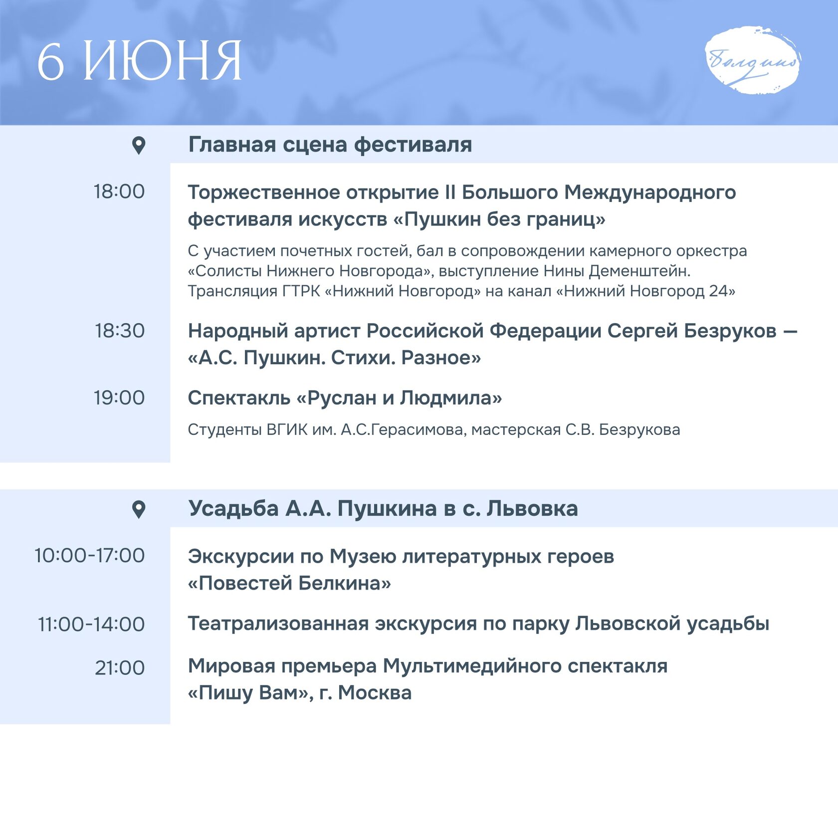 Фестиваль «Пушкин без границ» пройдет с 6 по 8 июня в Большом Болдине.