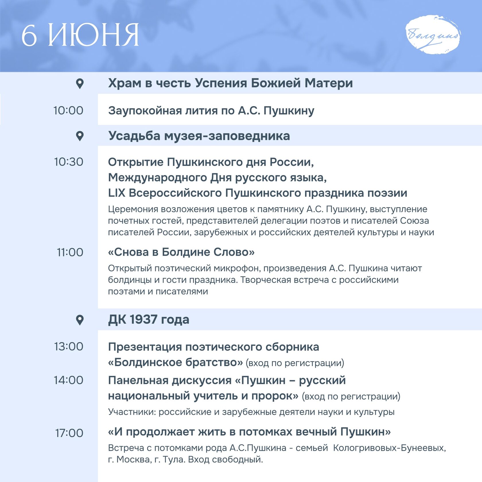 Старт 6 июня в 10.00 с литии об Александре Сергеевиче Пушкине в храме Успения Божией Матери!